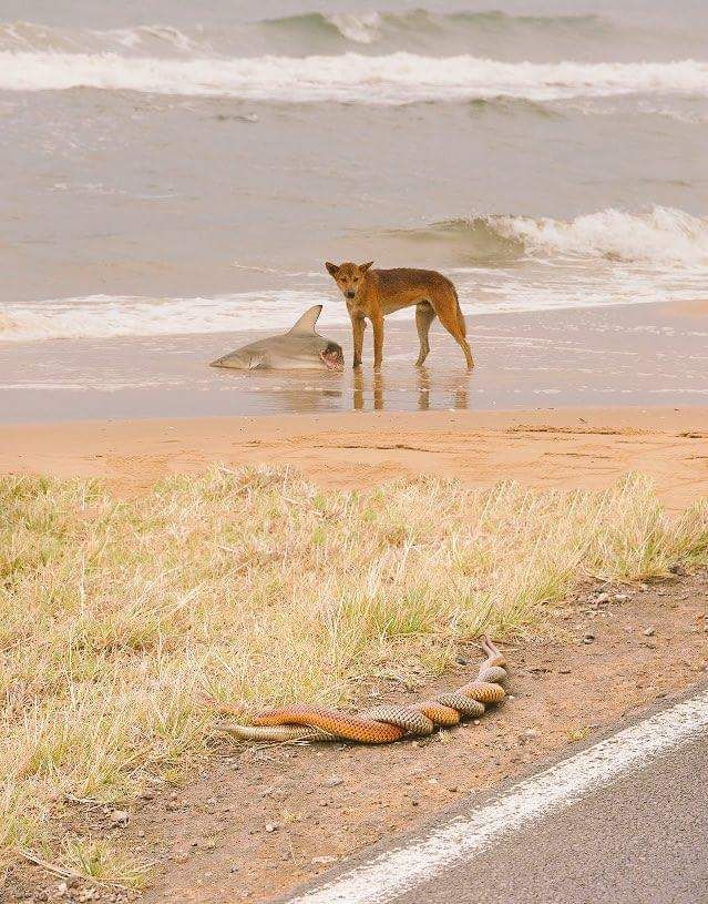 : Dingo eating a shark while two snakes have sex. Welcome to Australia.