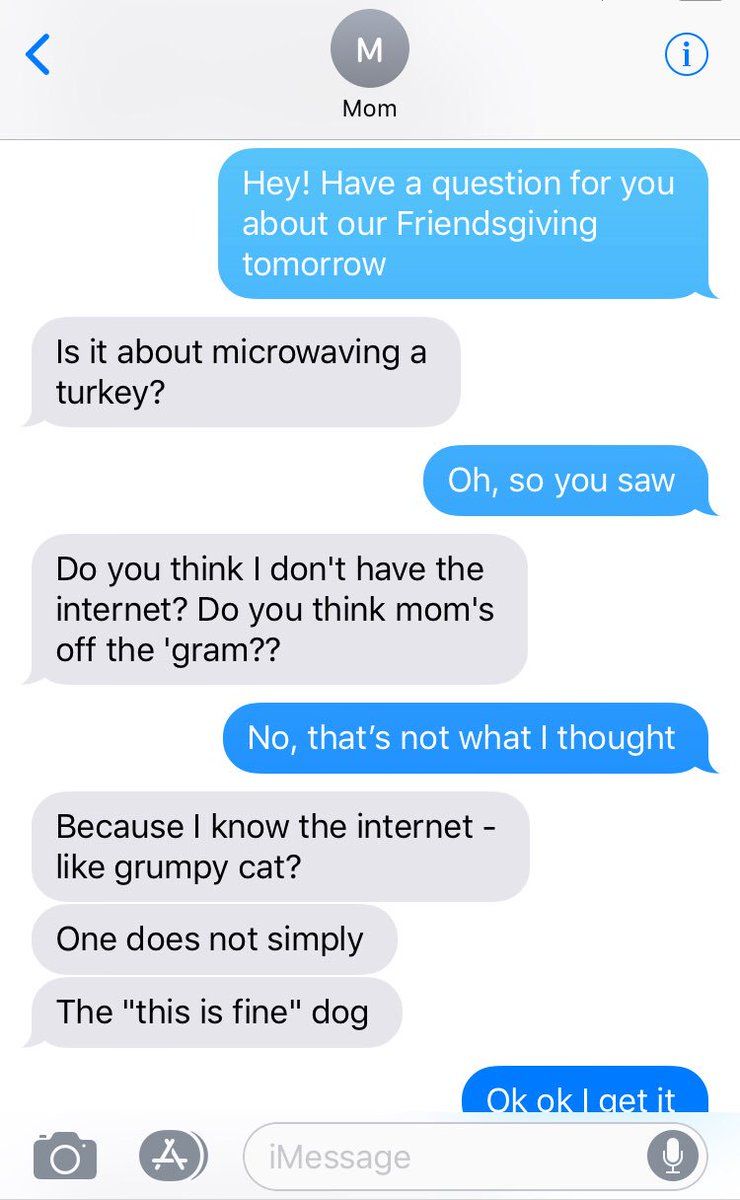 : Text your mom and ask how long it takes to microwave a turkey they said